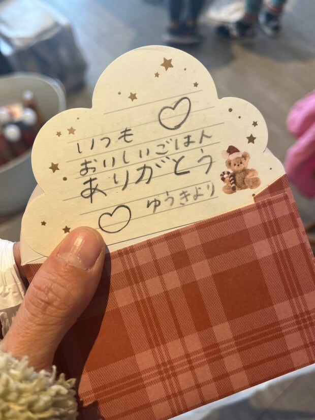 いつも遊びにきてくれるゆうき君がメッセージカードを持ってきてくれました。嬉しくてキュン♡