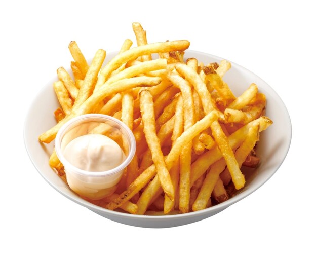 ニンニクが食欲をかき立てる特製ソースをかけたポテトフライ。