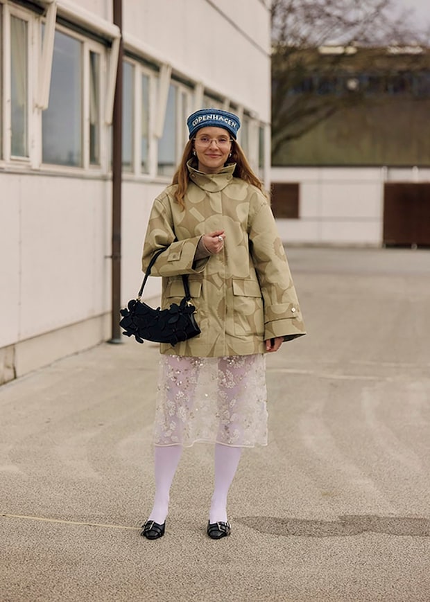 海外スナップでは、ふわっとしてボリューミーだったり、ビーズ刺繍が施された甘めのチュールスカートが優勢。黒ベースの着こなしにあえて投入するのも素敵です。