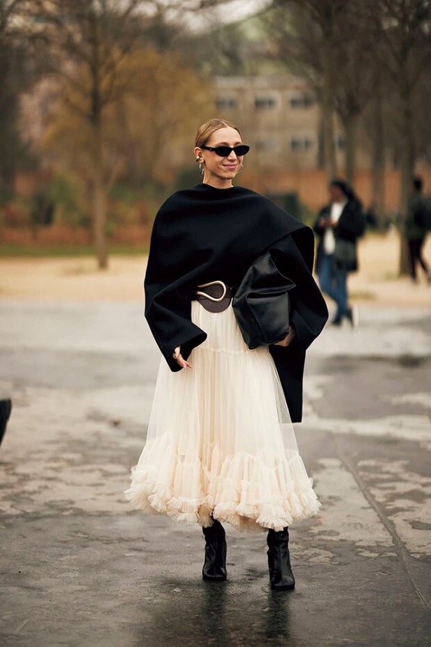 【ボリュームスカート】は甘すぎないドレッシーなものを選ぶのがカギ