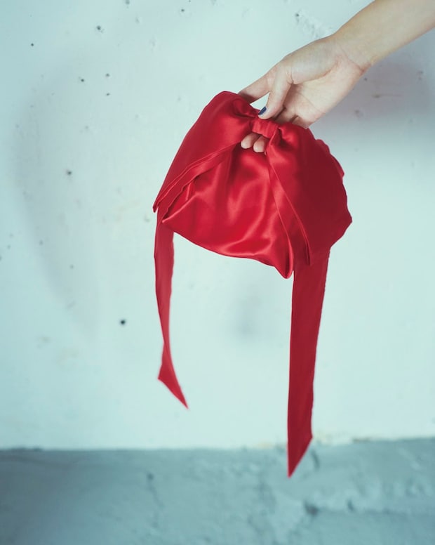 ピュアシルクをキー素材にしたメルボルンのブランドから、シグネチャー的存在のミニバッグを。シルク特有の上質な光沢感が際だつレディな赤を、デニムやチノパンに合わせたい。