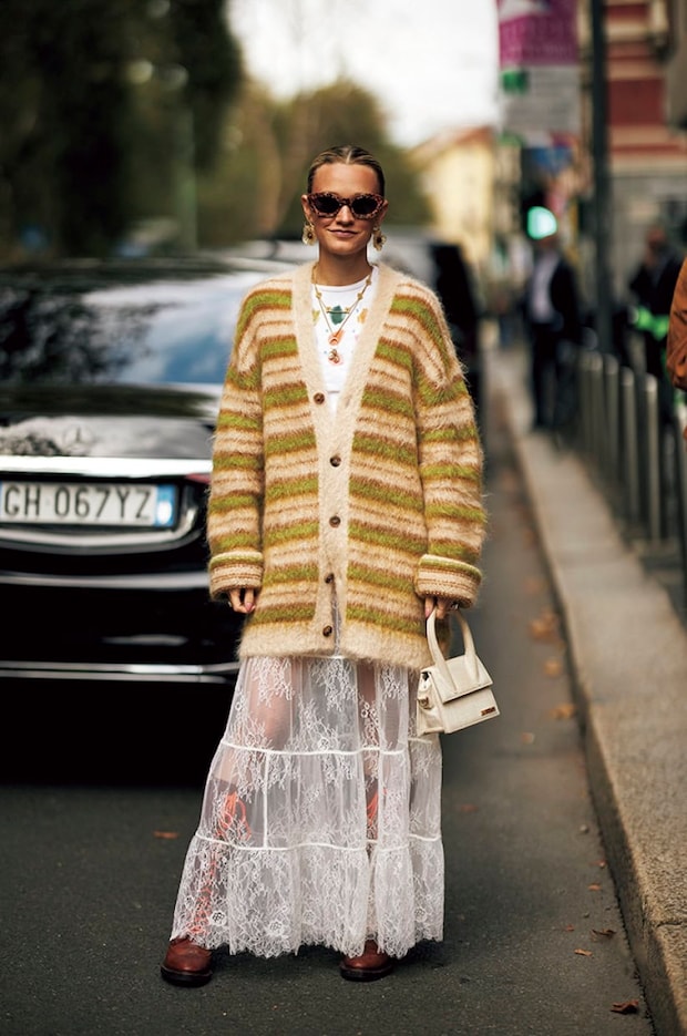 ガーリー路線とは一線を画す、センシュアルで繊細なムードをまとえるレースも私たちの強い味方。足元にボリュームを持たせるバランス感が今ドキ。