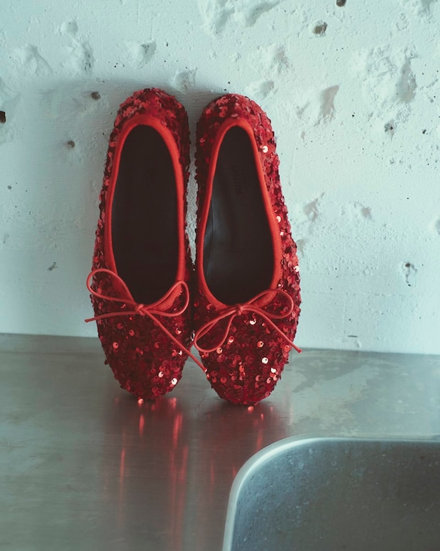 ザクザクと敷き詰められた、表情豊かなスパンコールがキャッチーな1足。どこかレトロな甲深めのデザインも今の気分にマッチ。カジュアル服の足元に、ドレスアップ要素として。
