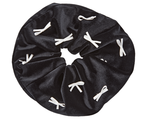 直径18cmの大振りサイズにタイニーなリボン。着けると立体感があって可愛いベロアシュシュ。パーティシーンにも◎。