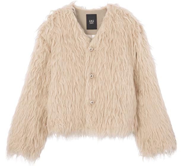 ニュアンスのあるヌーディカラーに染められた毛足長めのファーが気分。袖を通すとシルエットの可愛さにぐっときます。