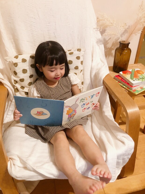 絵本を読みながら一緒になって「ぎゅっぎゅっ!」と何度も子供を抱きしめて。