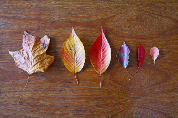 落ち葉拾いをしていると、いろんな形や色の落ち葉があることに気付くはず。