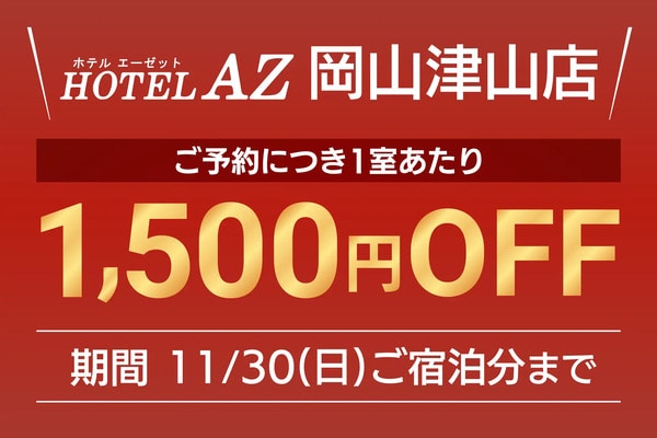 また、11月1日(土)~30日(日)の期間、「HOTEL AZ 岡山津山店」開業記念の特別割引プランとして、「オープニングキャンペーン」を実施。