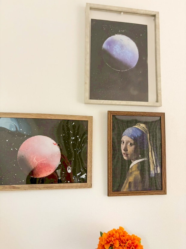 出来上がったパズルはB5サイズになるので、そのまま同じくセリアでB5サイズの額縁を買って入れてみました☆