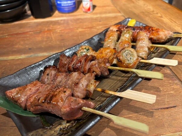 串焼きにも注目だ。朝締めのモツを店内で1本1本串刺しし、職人が丁寧に焼き上げる「モツ串」、山梨県産の信玄鶏を手切り・手ごねで仕込むためゴロゴロ食感が楽しめる「つくね串」、甘みの強い群馬県産の加藤ポークの肉汁が野菜にしっかりと染み込んだ絶品串「豚バラ巻き串」を味わってみて。