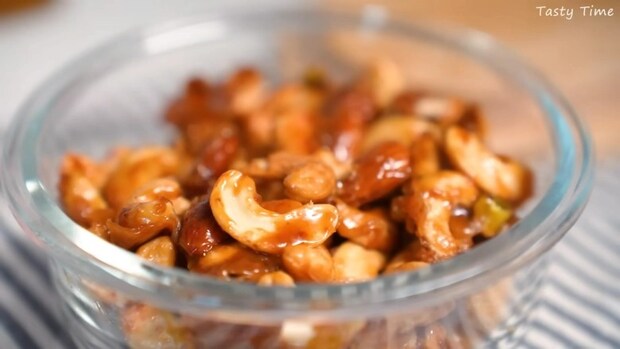 TastyTimeさんは、こちらをキャラメルナッツにアレンジ。フライパンで砂糖とメープルシロップを加熱し、溶けたらバターと味噌を加えます。くつくつしてきたらミックスナッツを投入して絡めましょう。クッキングシートなどに広げてしっかりと冷ませば、甘じょっぱさがクセになるキャラメルナッツの完成です!