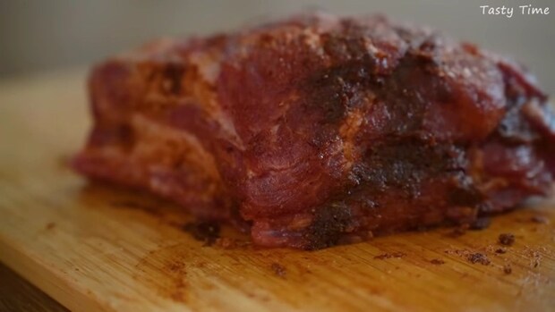 残りの半分は、低温で焼いた肉をほぐしながら食べるアメリカの家庭料理“プルドポーク”にアレンジ。おろしにんにくやパプリカパウダー、ブラックペッパーなどの調味料を混ぜ合わせ、こちらの肩ロースブロックにもみ込みます。ラップで包み、冷蔵庫で一晩寝かせましょう。