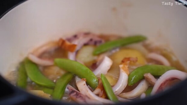 やわらか焼きいかは、じゃがいもとの相性抜群!バターでじゃがいもと玉ねぎを炒め、水を加えてやわらかくなるまで煮込みます。野菜に火が通ったら、やわらか焼きいかと調味料を加え、汁気がなくなるまで煮ればできあがり♪