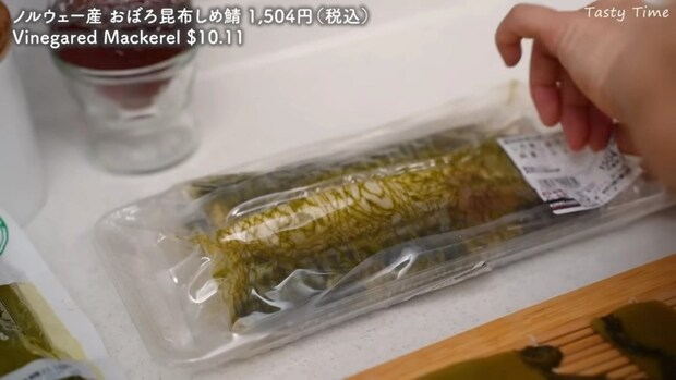TastyTimeさんは、このおぼろ昆布しめ鯖と高菜を使って棒寿司を作っていました。広げた巻きすの上に高菜→おぼろ昆布しめ鯖→酢飯の順にのせて巻いていきます。巻き終わったら食べやすい大きさにカットするだけ!しめ鯖と酢飯のほどよい酸味、おぼろ昆布の旨味に、高菜の歯ごたえが合わさって絶品のおいしさです♪