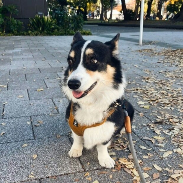 向こうから来たご婦人に「あなた、ニコニコしながら歩いてるわね✨素敵ね〜」と言われた三毛犬