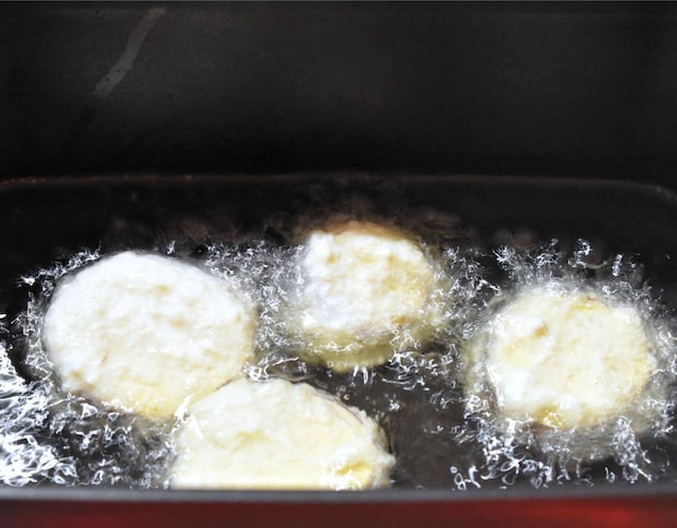 具材に衣を絡めて揚げる