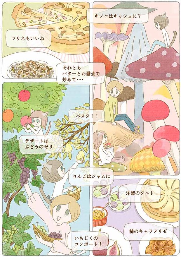 2025年10月15日 秋っていいね~! やきいも、きのこキッシュ、ぶどうのゼリーと秋の味覚で広がる空想の世界/saudade(15) OZmall 【第15話】|きりぎりすとにあり_秋の味覚(C)よしのくりこ/スターツ出版 無断転載禁止