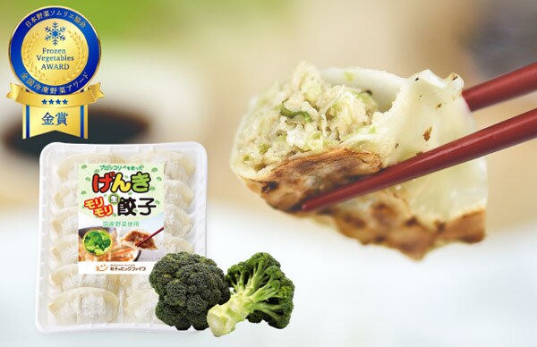 ブロッコリーを主役にした新商品「げんきモリモリ餃子」は、農林水産省が2026年にブロッコリーを「食卓に欠かせない重要な野菜」として、ジャガイモ以来約半世紀ぶりに「指定野菜」に追加することに着目して開発した。