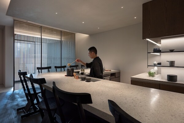 クラフトや伝統的なデザインと同様に、お茶の楽しみ方もアジア各国でそれぞれに異なる。その違いや面白さを静かに味わえるよう、茶室のようなBARのようなカウンター8席の空間がつくられた。