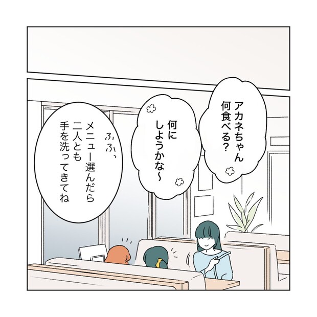レストランに入って「何食べる?」と楽しそうに話していると、シズクも「メニュー選んだら2人とも手を洗って来てね」と嬉しそうです。