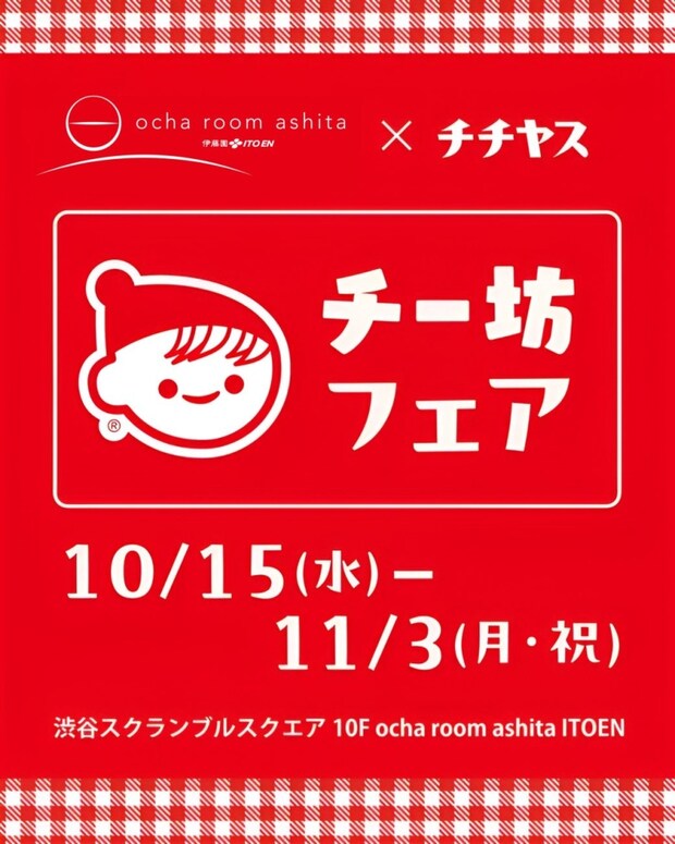 伊藤園は、10月15日から11月3日までの期間限定で、「ocha room ashita ITOEN×チチヤス・チー坊フェア」を開催する。
