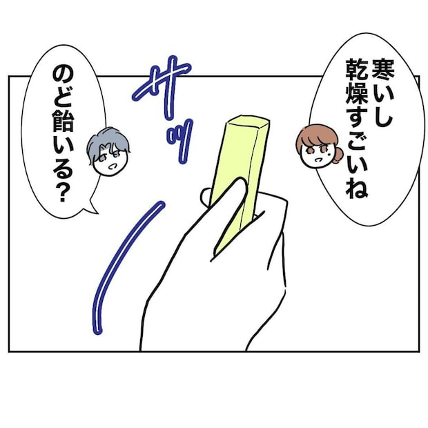 まいがくれたのどアメを、みくに渡す夫…。一年前というと、ちょうど娘が生まれたころでしょうか。そのころ、2人は出会ったようですね。