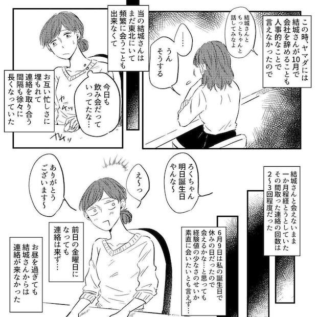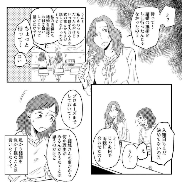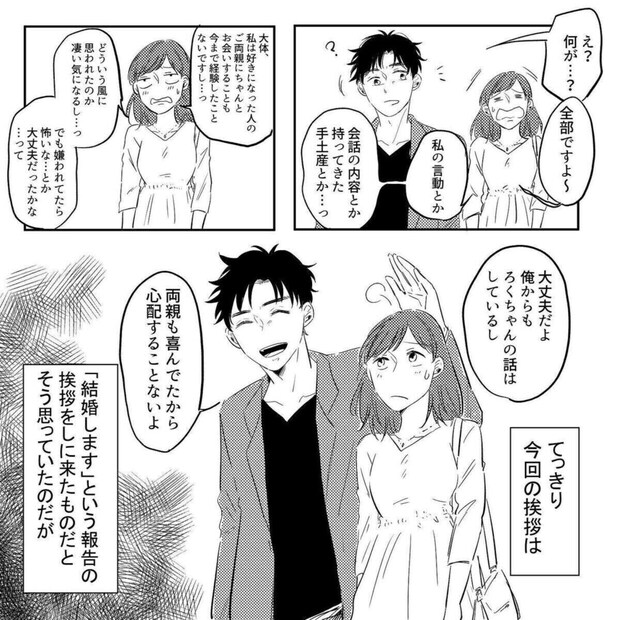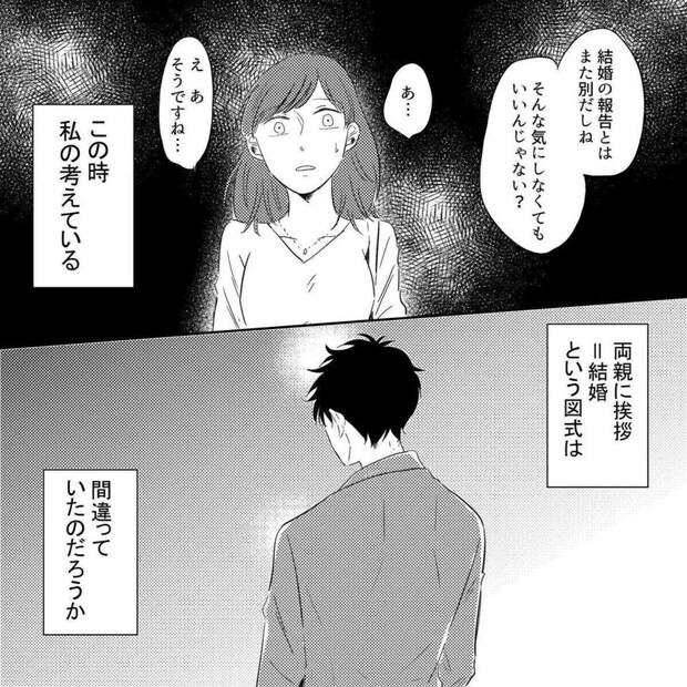 ろくさんは「プロポーズのあとに相手の親に会いに行くのは結婚のあいさつ」と考えていましたが、どうやら結城さんはそうではない様子。認識の違いにモヤモヤするろくさんでしたが、その場で彼の真意を確かめることができなかったようですね。