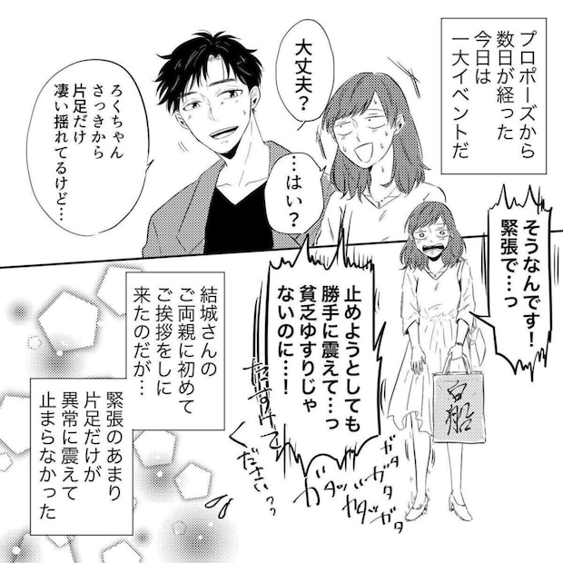 会社で知り合ったイケメンの先輩、結城さんからプロポーズを受けたろくさん。結城さんの両親にあいさつに行くことになり、緊張でカチカチに。