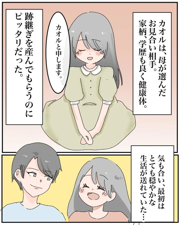 カオルは、母が選んだお見合い相手でした。家柄、学歴も良く健康体。我が家の跡継ぎを産んでもらうのにピッタリな相手でした。カオルとは気も合い、最初はとても穏やかな結婚生活が送れていました。
