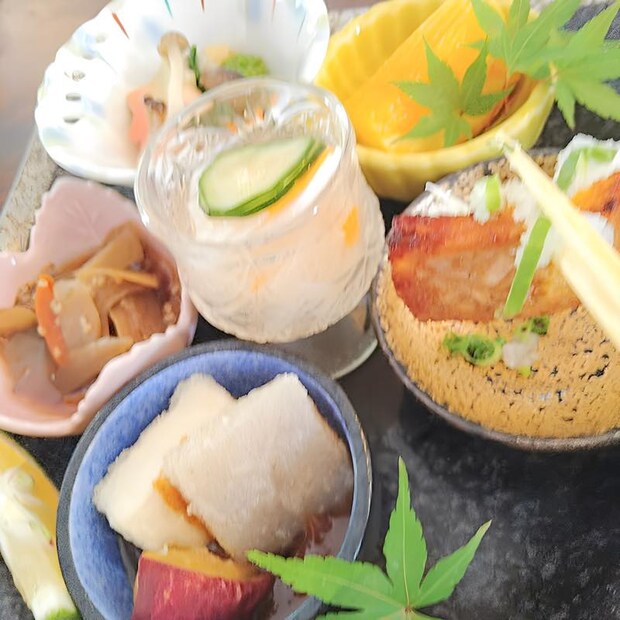 そして、自家農園で栽培した季節の朝採れ野菜と旬の食材を中心に、店主が長年培ってきた技術と経験、何より愛情をこめて仕上げた小鉢の数々は、まさに「小さな幸せの詰め合わせ」といった雰囲気。