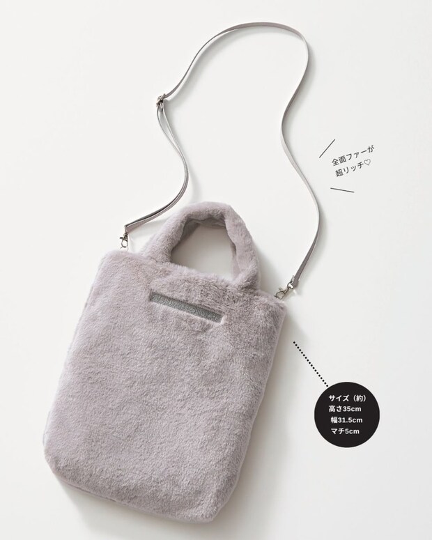 sweet12月号増刊「オトナスウィート」の付録は、ジル バイ ジルス チュアートのトートバッグが冬仕様で登場。ふわふわの毛足が心地よいグレーのファーバッグは、ショルダーストラップつきでハンズフリーに、アクティブに使えるデザイン。ここでしか手に入らない限定アイテムは、ぜひ早めのご予約を。