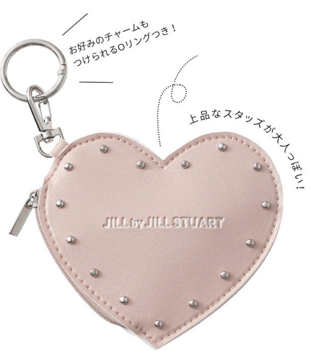 ハート形ポーチチャームは、スタッズで今っぽさ増し増しにアップデート。Oリングはそのままでも、お好きなチャームをつけても可愛い。