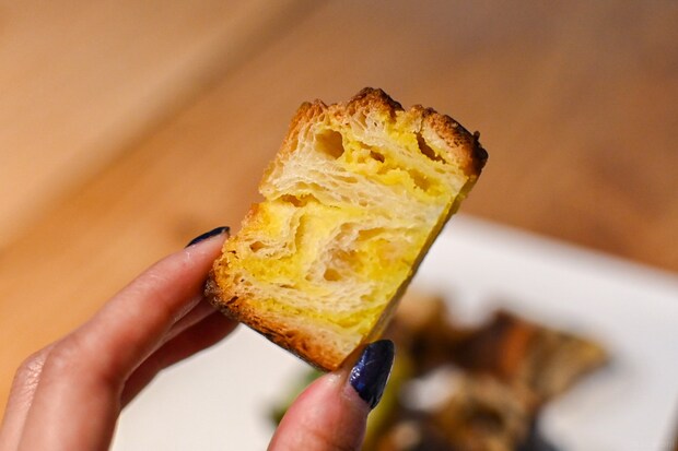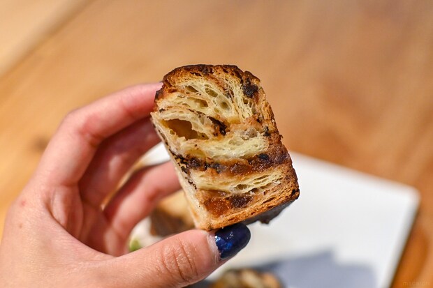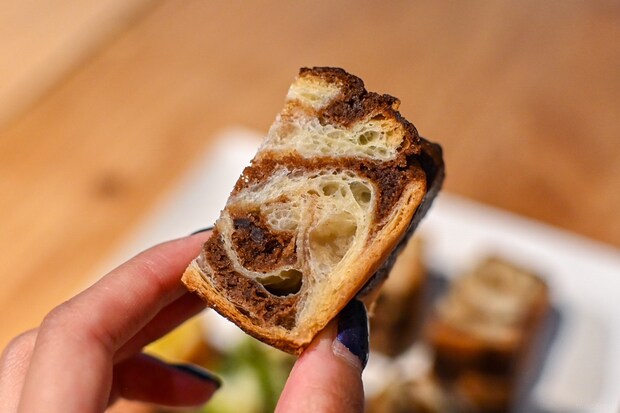 しっとりとしたデニッシュ生地は香り豊かで、口の中でチョコレートとともにバランスよく楽しめます。想像以上にチョコレートがたっぷりと入っているのでチョコレートの濃厚な風味を存分に味わえますよ。
