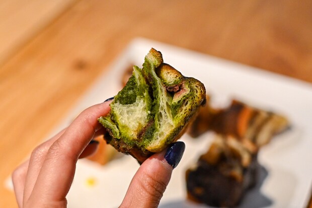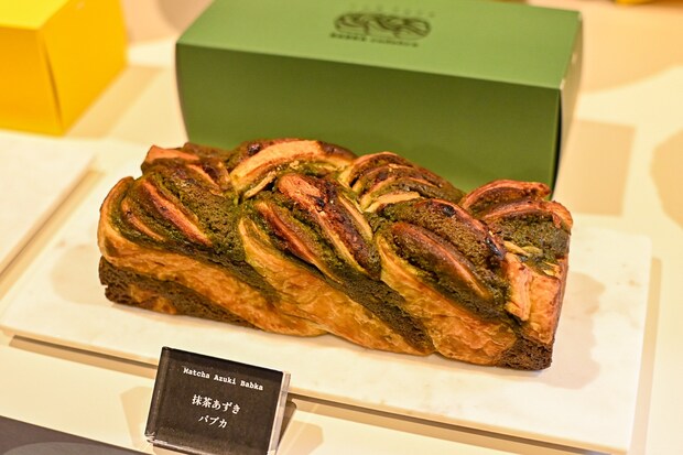 鮮やかな緑色にそそられる、バブカカダブラ唯一の和風バブカ。香り豊かな抹茶とホワイトチョコレートを合わせた生地に、北海道産あずきを使ったつぶあんを入れて焼き上げた商品です。
