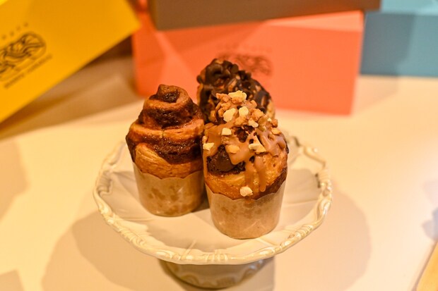 バブカをくるくると巻いてカップサイズに仕上げた「バブカップ」。バブカップはオリジナル、チョコレート、キャラメルナッツの全3種類です。ちょっとしたギフトにもぴったり。