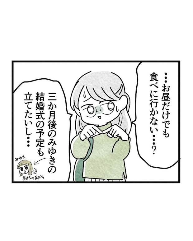 友人の結婚式の計画もあるからとしぶしぶお昼を食べることを承諾したさほさん。