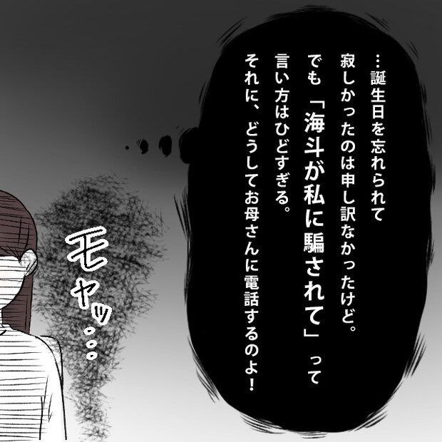 「・・誕生日を忘れられて寂しかったのは申し訳なかったけど、でも『海斗が私に騙されて』って言い方はひどすぎる。それに、どうしてお母さんに電話するのよ!」そう思ってモヤっとした私。
