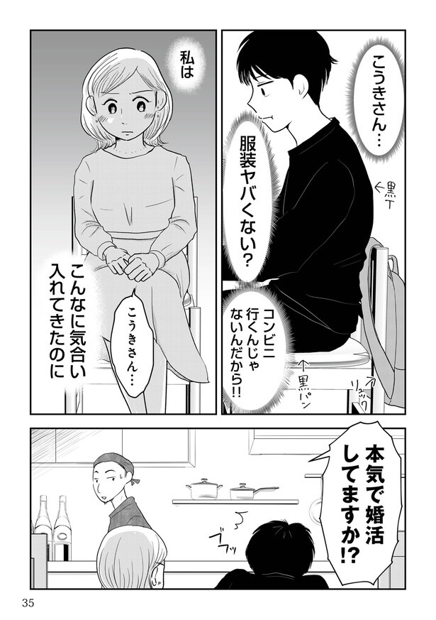 前回、思いやる行動をとってくれないこうきにモヤモヤしたアイコ。やる気が感じられなかったアイコはこうきに「本気で婚活してますか⁉」と聞いてしまう。するとこうきは婚活に対しての真面目な気持ちを話し始めて…?