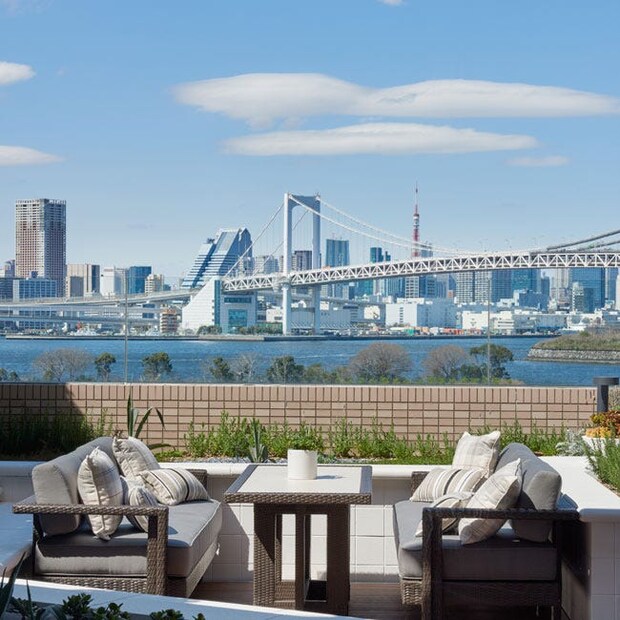 スイートルームにステイするゲストは、エグゼクティブラウンジが利用できるのも魅力。ラウンジでチェックインを済ませたら、ウェルカムドリンク&スイーツでひと休み。その後も、ティータイムからディナー前のカクテルタイム、翌日の朝食まで、時間に応じたフードプレゼンテーションが自由に楽しめる。大きな窓や屋外テラスから東京湾の眺望に癒されながら、大人のリラックスタイムを過ごそう。また、「庵スパTOKYO」のアクアゾーンも無料で1回利用OK。開放的な眺望が広がる屋内温水プールや屋外ジェットバス、アロマミストサウナなどが備わっていて、都会にいながらリゾートムードに浸れる。