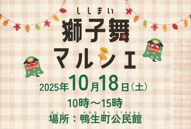 10月18日(土)、嘉麻市の鴨生町公民館で「獅子舞マルシェ」が開催されます。