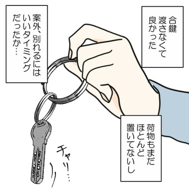 引っ越したばかりだったS葉さんは、M生に合鍵も渡しておらず彼の荷物もほぼなし。不倫相手と別れるにはベストなタイミングでした。