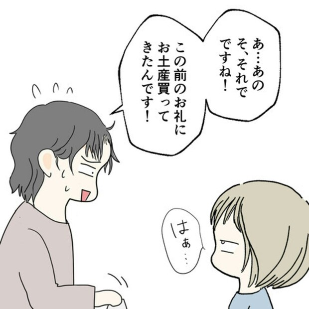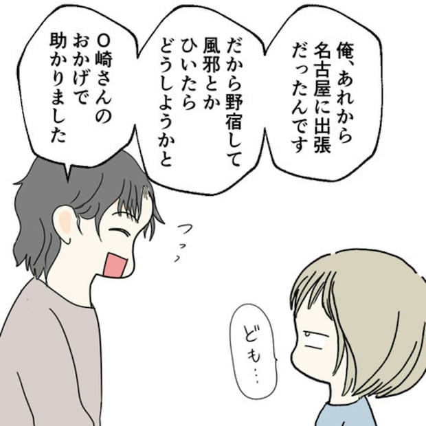 E原さんを1晩泊めたあの日以来、3日ぶりに再会したS葉さん。彼はS葉さんにお礼を言いたくて会いに来てくれました。それなのに、S葉さんの返事はあっさりしたものです。