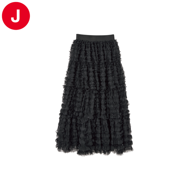 オートクチュールのように仕立てたデザインが印象的な「Col Pierrot」。コーディネートがパッと華やぐドレッシーなスカート。チュールスカート¥165,000(コル ピエロ/ミューズ ドゥ ドゥーズィエム クラス 六本木店)