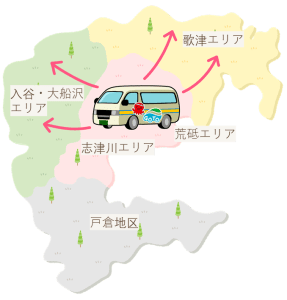 歌津エリアと入谷エリアの間に直通運行はありません。移動の際は、一度、志津川エリアで乗り換えが必要となります。