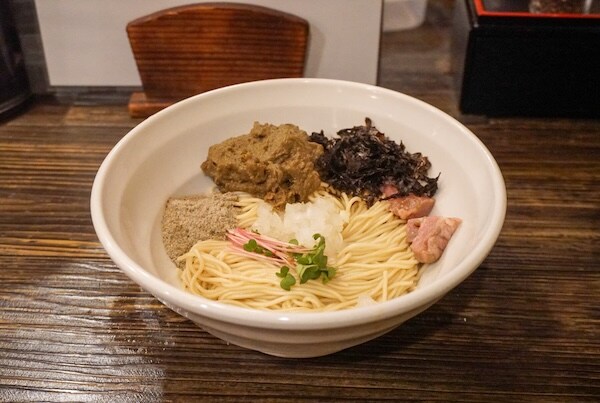 「魚ヶ麺 園」が特別なのは、一杯食べて終わりじゃないところ。「和え玉」という名の“第2章”が用意されている。