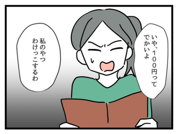 はるかは「100円を負担する」と、申し出ました。ですが、りさは頑なに拒否。たしかに、「おごられたくない」という気持ちは、共感できます。