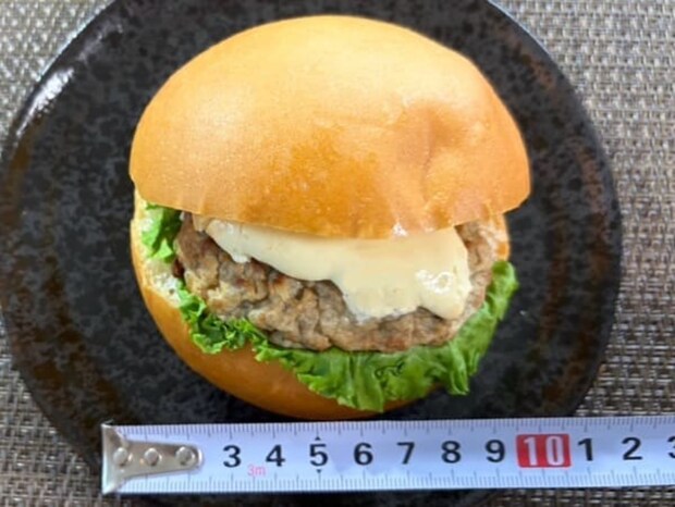大きさは直径が10センチくらい。本家マクドナルドのチーズバーガーの直径が9.5センチくらいとのことなので大体同じか少しだけ大きい感じですね。