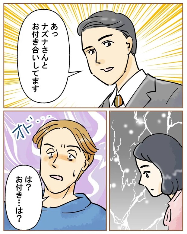 すると、「あっ、ナズナさんとお付き合いしてます」と言うキサラギさんに一瞬固まるナズナさん。「は?お付き・・は?」と動揺するツカサさんに、