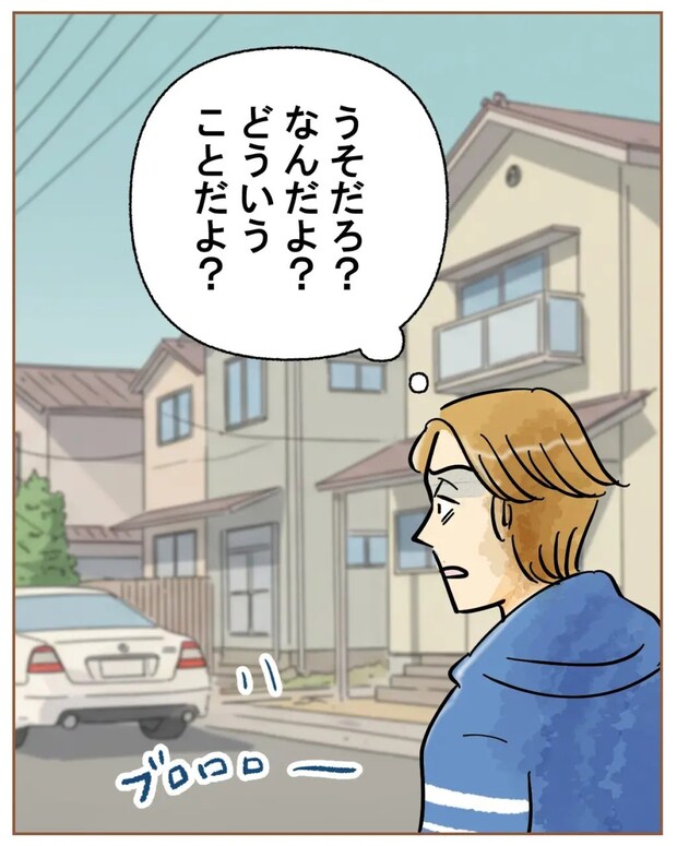 二人が車で去って行くのを見つめながら、「うそだろ?なんだよ?どういうことだよ?」と呆然とするツカサさん。