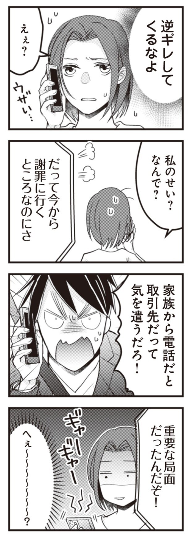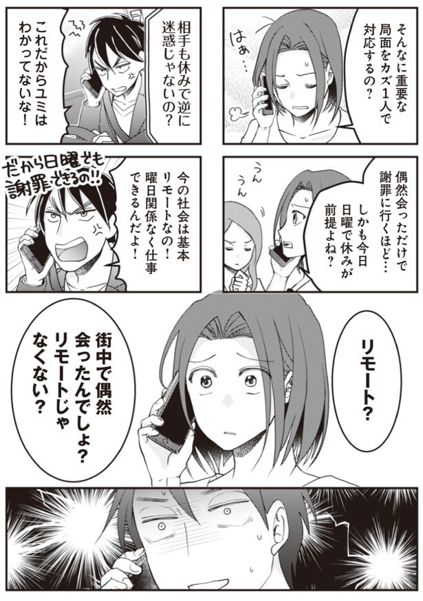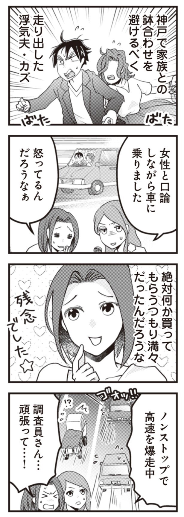 前回、不倫旅行中の夫に電話し、揺さぶったユミ。夫と不倫相手がいる神戸に行くと伝えると、夫は慌てて不倫相手と帰宅した。その後、怒った夫がユミに電話で逆ギレをしてきて…。